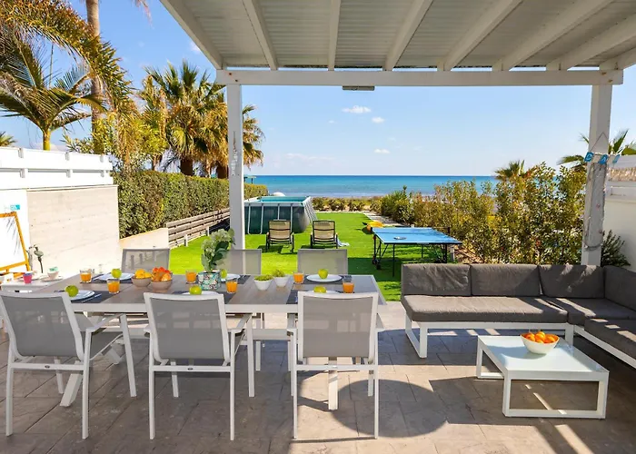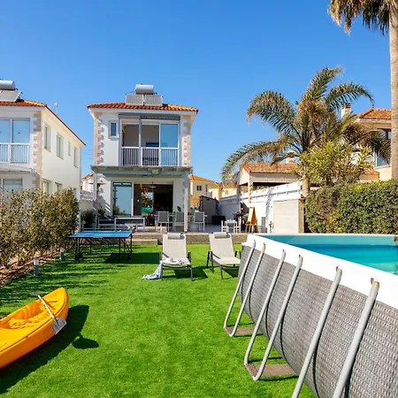 Ayia Thekla Seafront Villa Dagi具有3间卧室,配备室外游泳池和水上公园,带给旅客宾至如归的感觉. 旅客在该地区游览会比较方便,开车10分钟可至Makronissos 海滩,开车15分钟就可以到水世界水上乐园.
